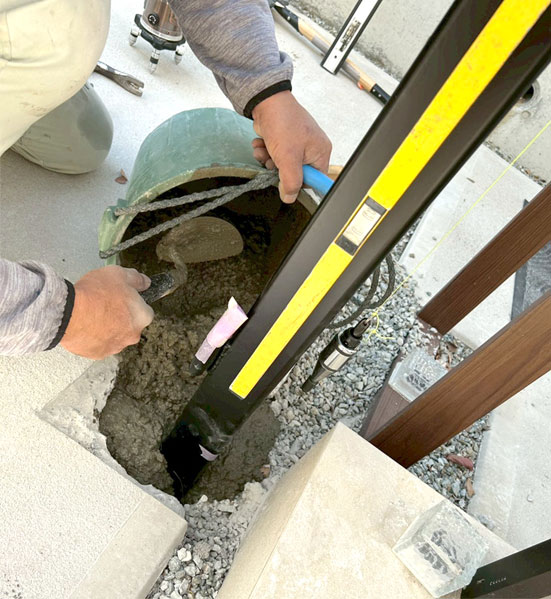 冬場はモルタルが乾きにくいので余裕をもって、門扉吊込みが必要です。